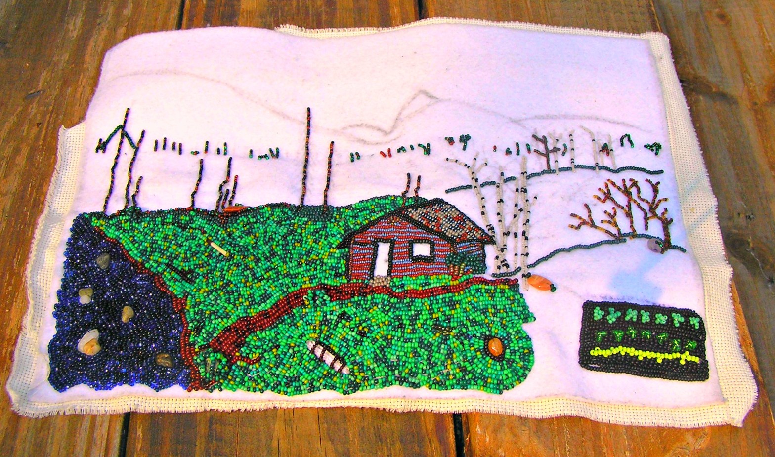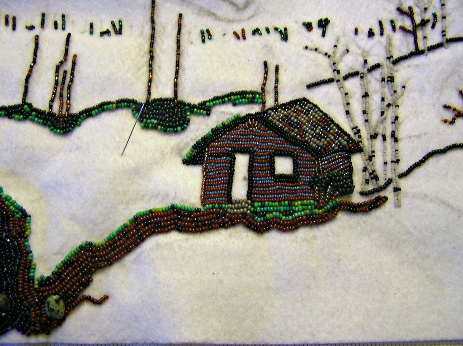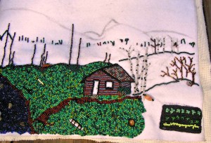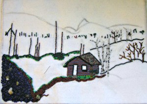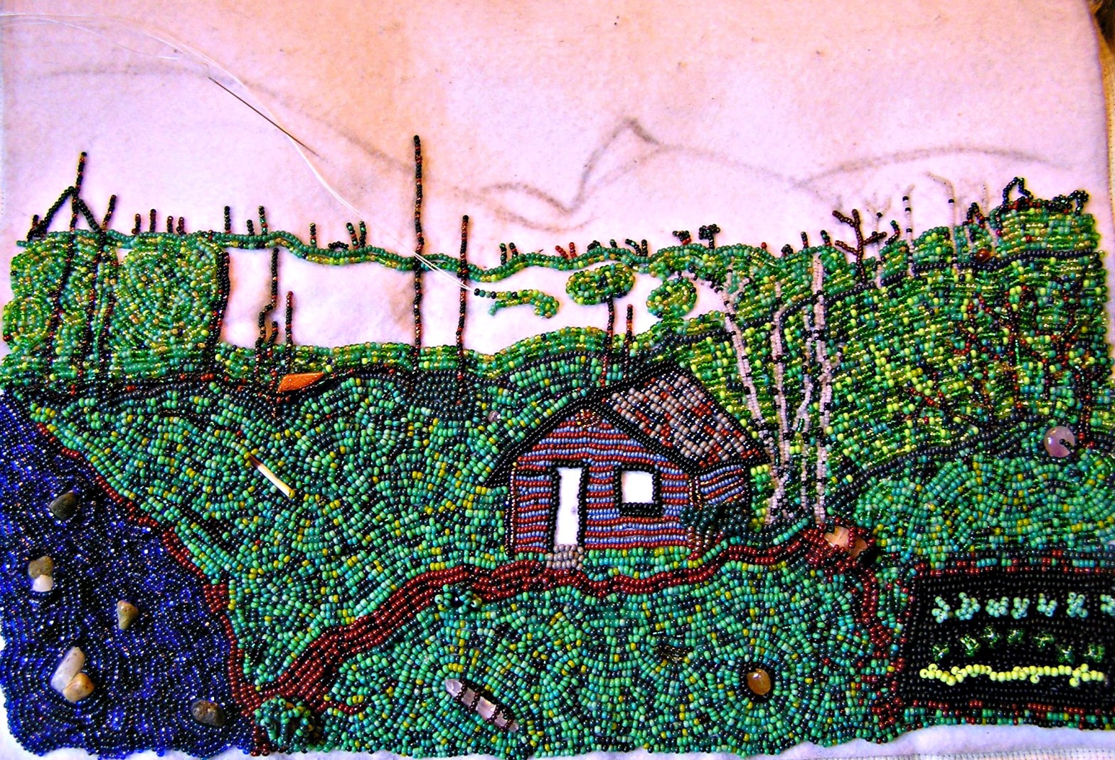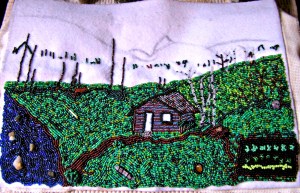 I am still working on the cabin. I am anxious to get the flat sections finished and get started on the layered areas. The bushes, flowers and tree branches will be a second layer and the tree leaves will be added on last. Lots to do.