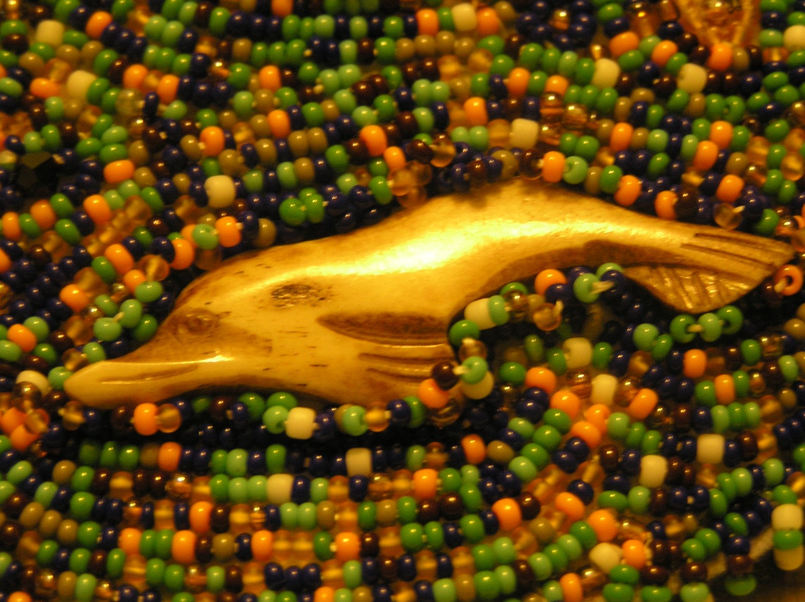 This is a new piece. It is made of salmon skin, fox fur and porcupine quills. Trimmed with freshwater pearls and seed beads. I submitted it for entry into “Patterns of Influence” a juried art show. I found out today that it has been accepted ! I will have to wait until Friday evening to find out how or if it placed.